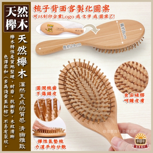 櫸木氣囊按摩橢圓長梳
