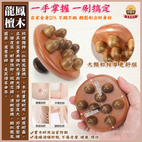 龍鳳檀木手持式9齒經絡刷