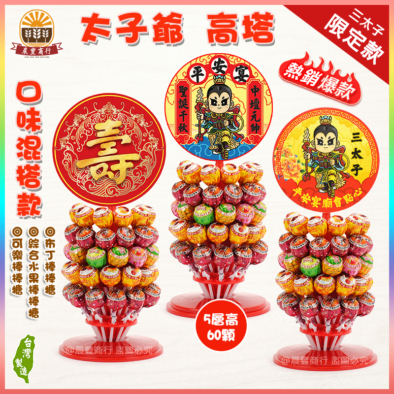 ★商品名稱: 三太子精選糖果架60入.120入.三太子最愛棒棒糖.步步高升高塔.口味混搭款