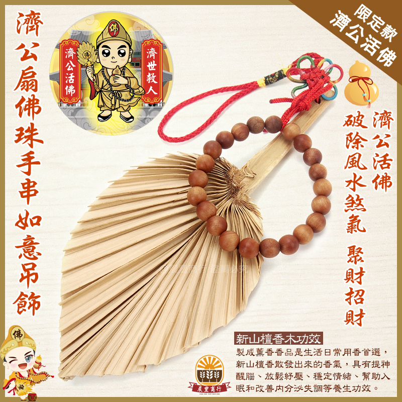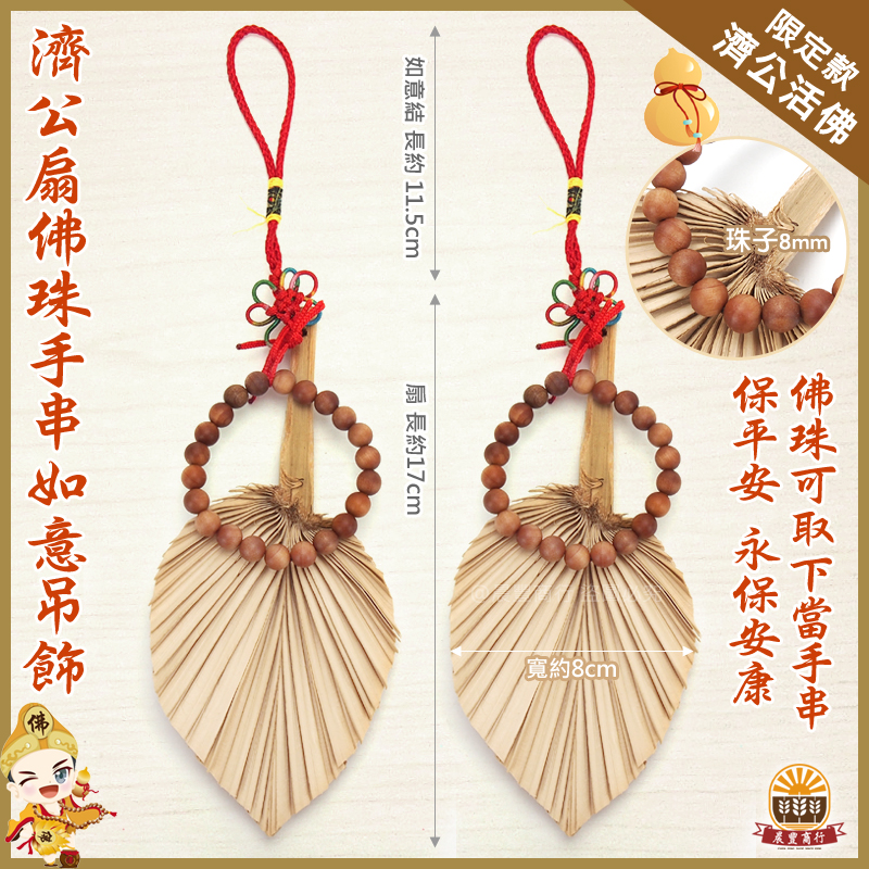 ★商品名稱: 濟公扇佛珠手串如意吊飾/濟公師父乩身用濟公扇 植物扇 (棕櫚扇) 純手工 /風水避煞/聚財招財