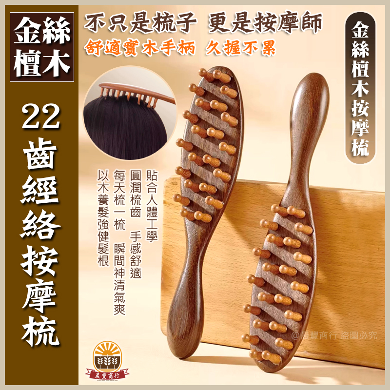 ★商品名稱: 金絲檀木/ 22齒經絡按摩梳(總長21cm)/禮贈品.歡迎團購
