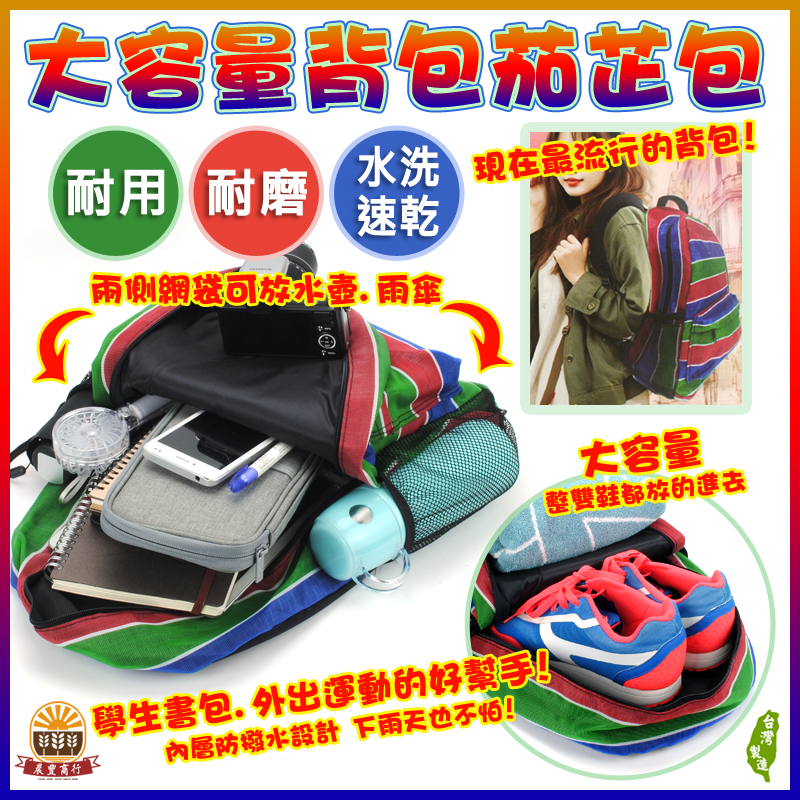 ★特 色: 兩側網袋可放水壺,雨傘,大容量可放運動鞋